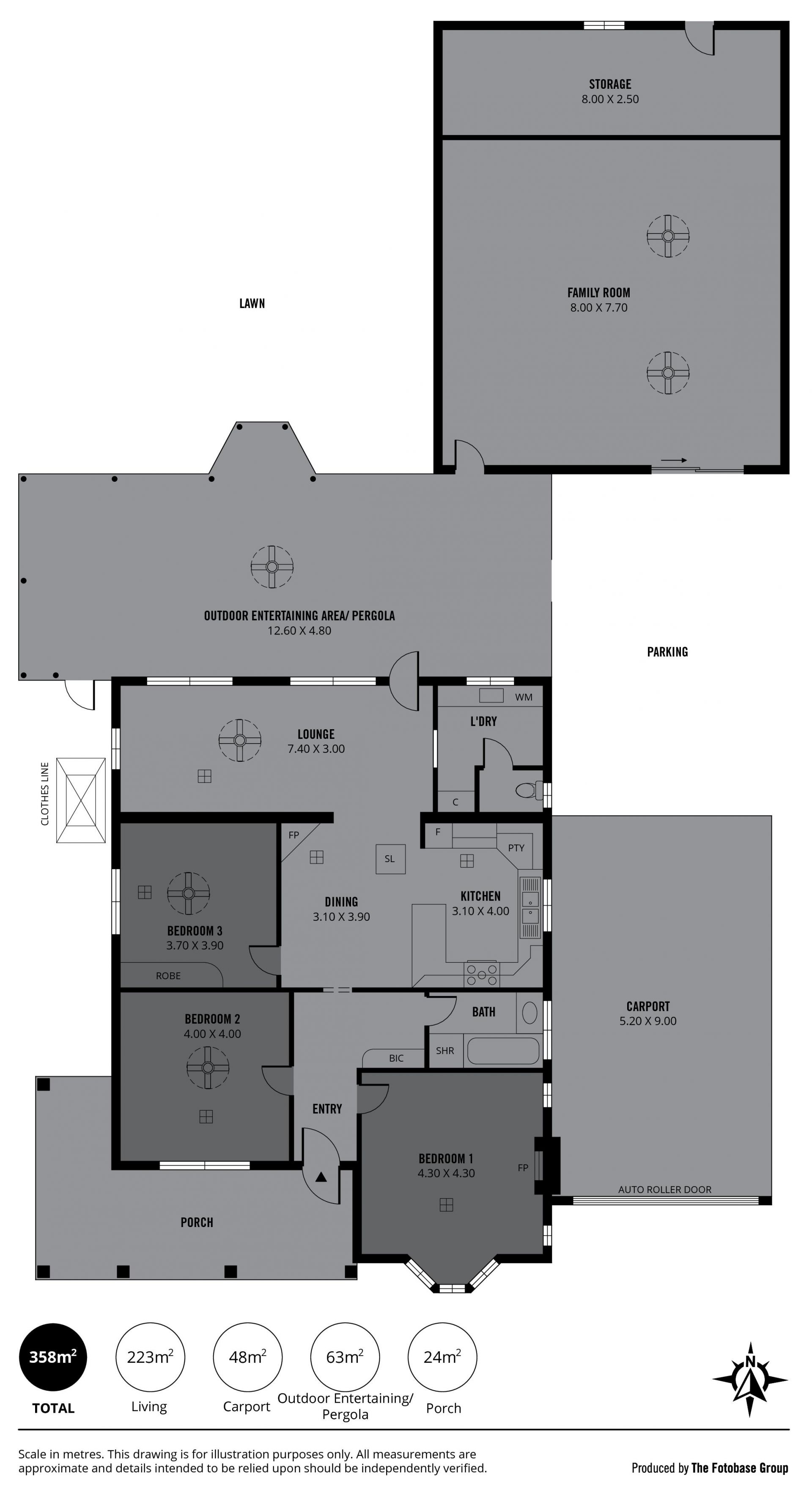 A large pergola is ideal for outdoor entertaining, and the huge detached games/rumpus room provides an enormous living space perfect for entertaining all year round.
