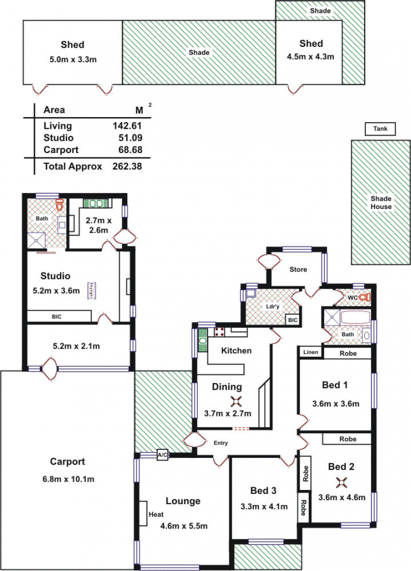The bonus to this property is the outside self-contained studio which offers living area, bedroom, kitchen, bathroom, toilet and laundry with a potential income up to $200.00 a week.