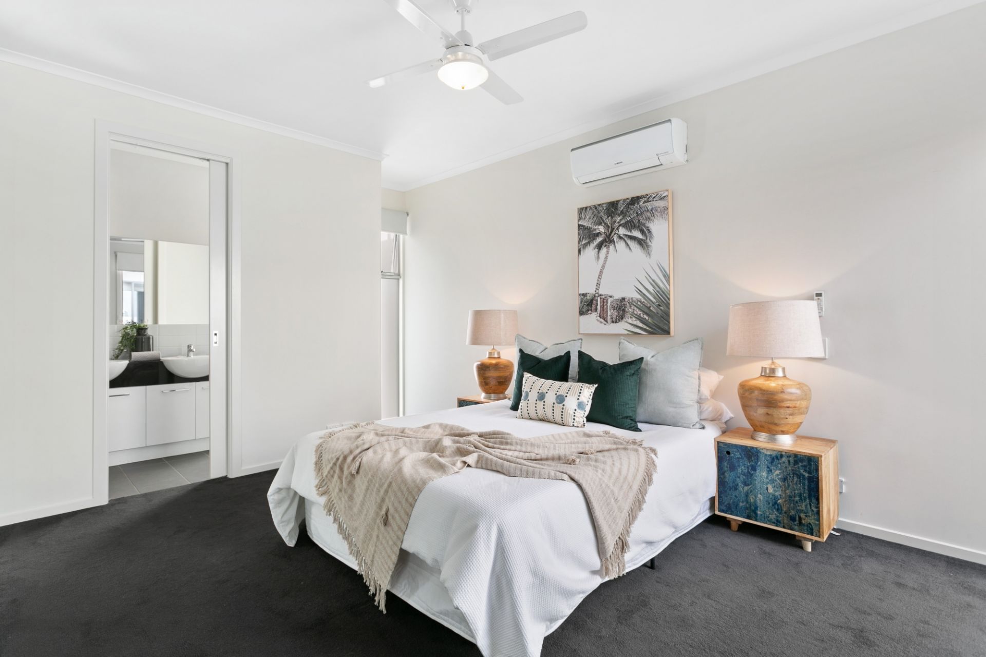 All bedrooms have ceiling fans, split system air conditioners and plush dark grey carpet, mirrored doors to the robes allow even more light into these areas.