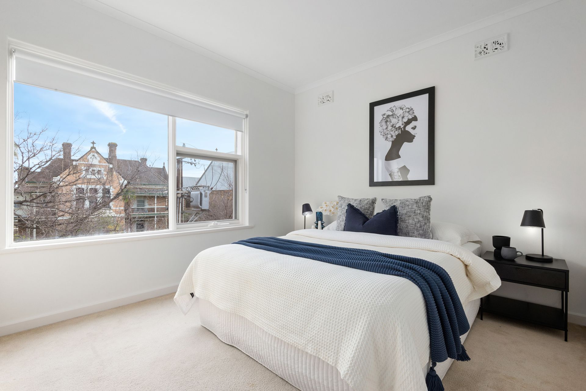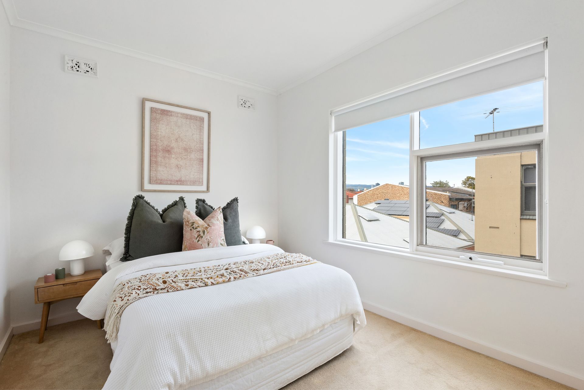 This top-floor apartment is positioned on a quiet tree-lined street and draws in tranquil views. With spring in full-swing it feels like you're sitting amongst the tree-tops across from St Laurence Cathedral.