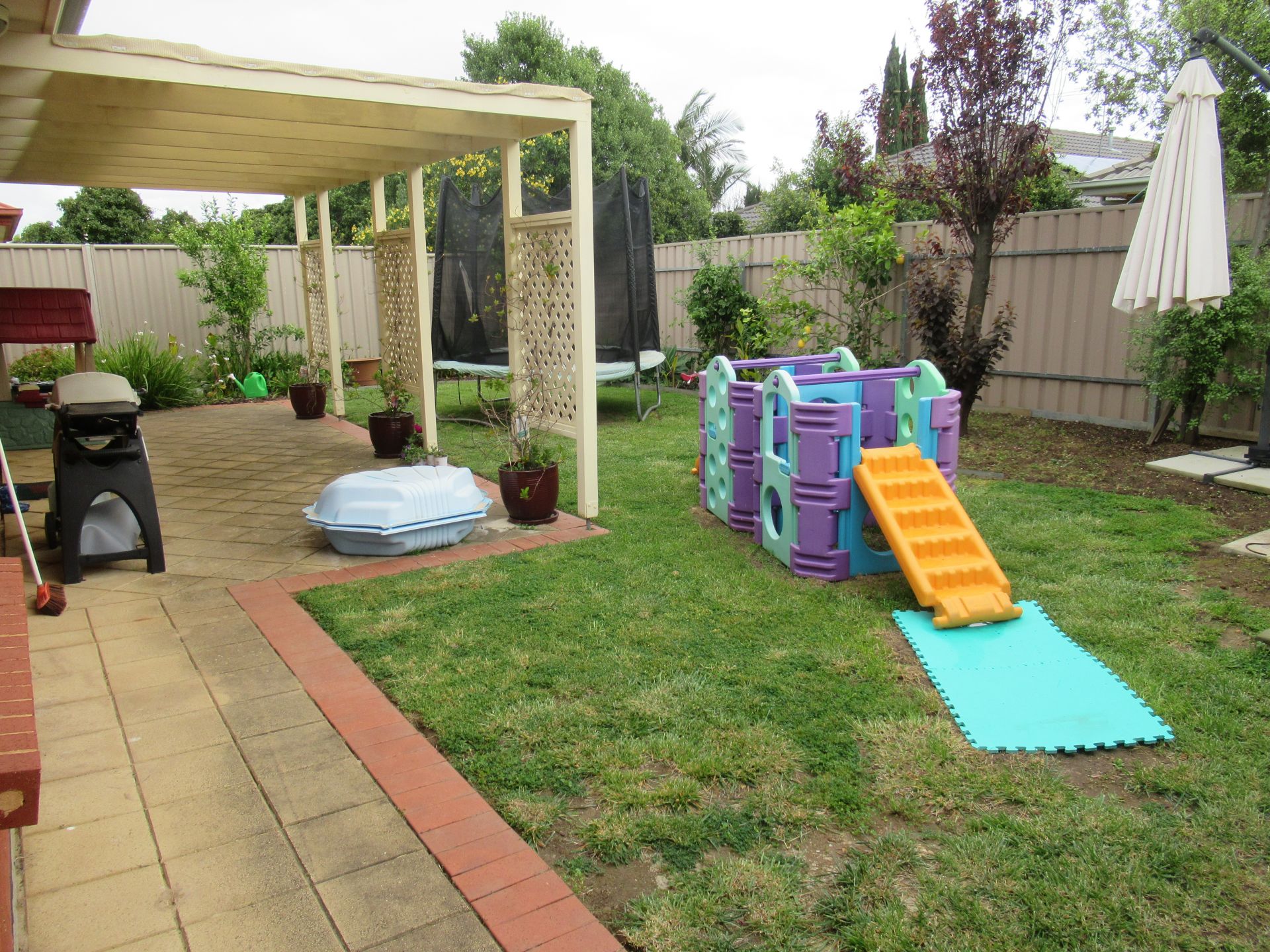 Outside offers easy care grounds with room to play plus an undercover outdoor paved pergola area. Secure double garage plus room for parking in the drive-way.