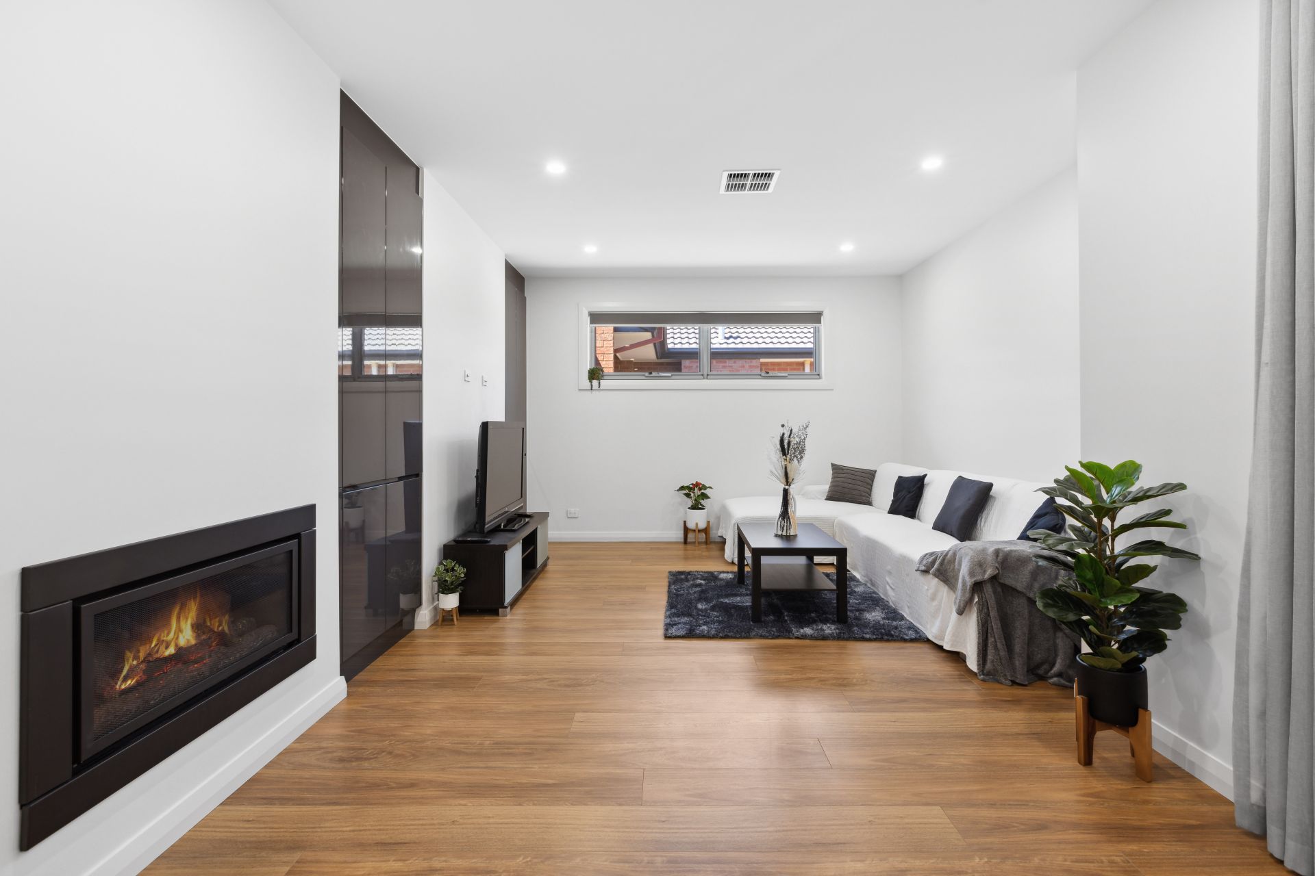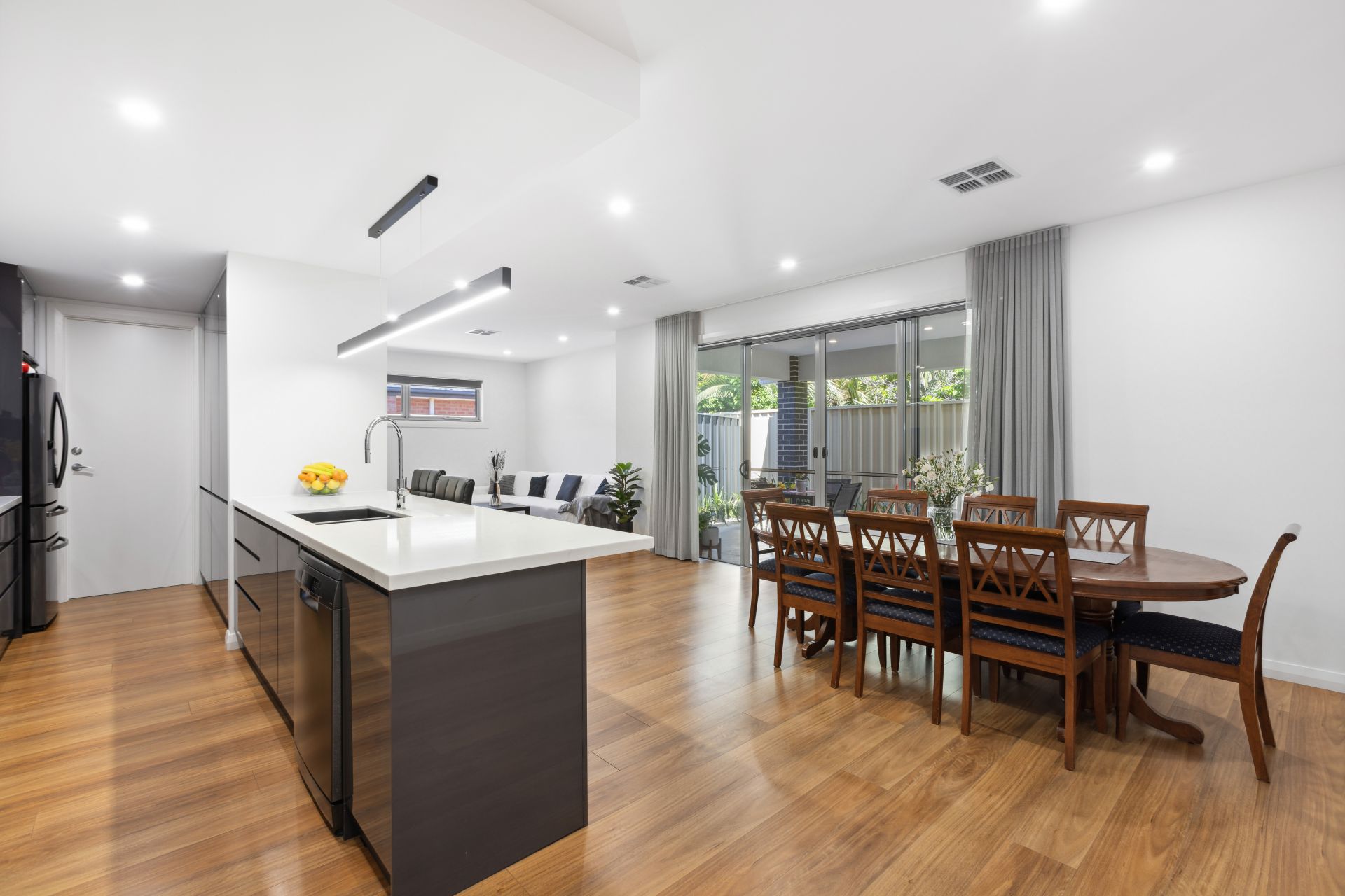 -Spacious and light filled open plan kitchen / living / dining with gas heater.