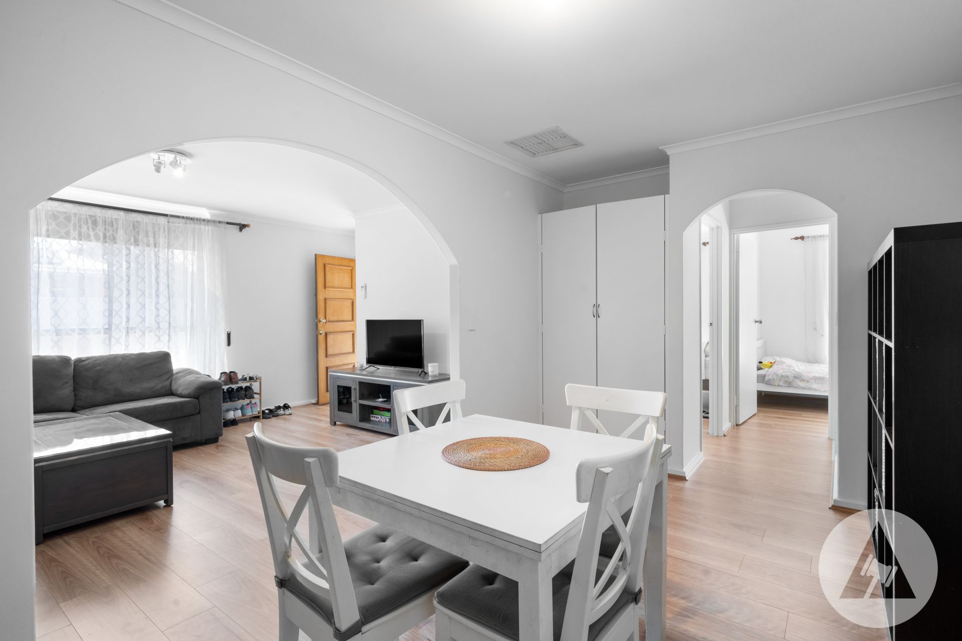 Positioned at the front of a small group, this well-kept two bedroom homette has been pleasantly updated throughout. Inside offers a spacious floorplan featuring lounge, dining and kitchen (gas stove and oven, double sink and ample cupboards).