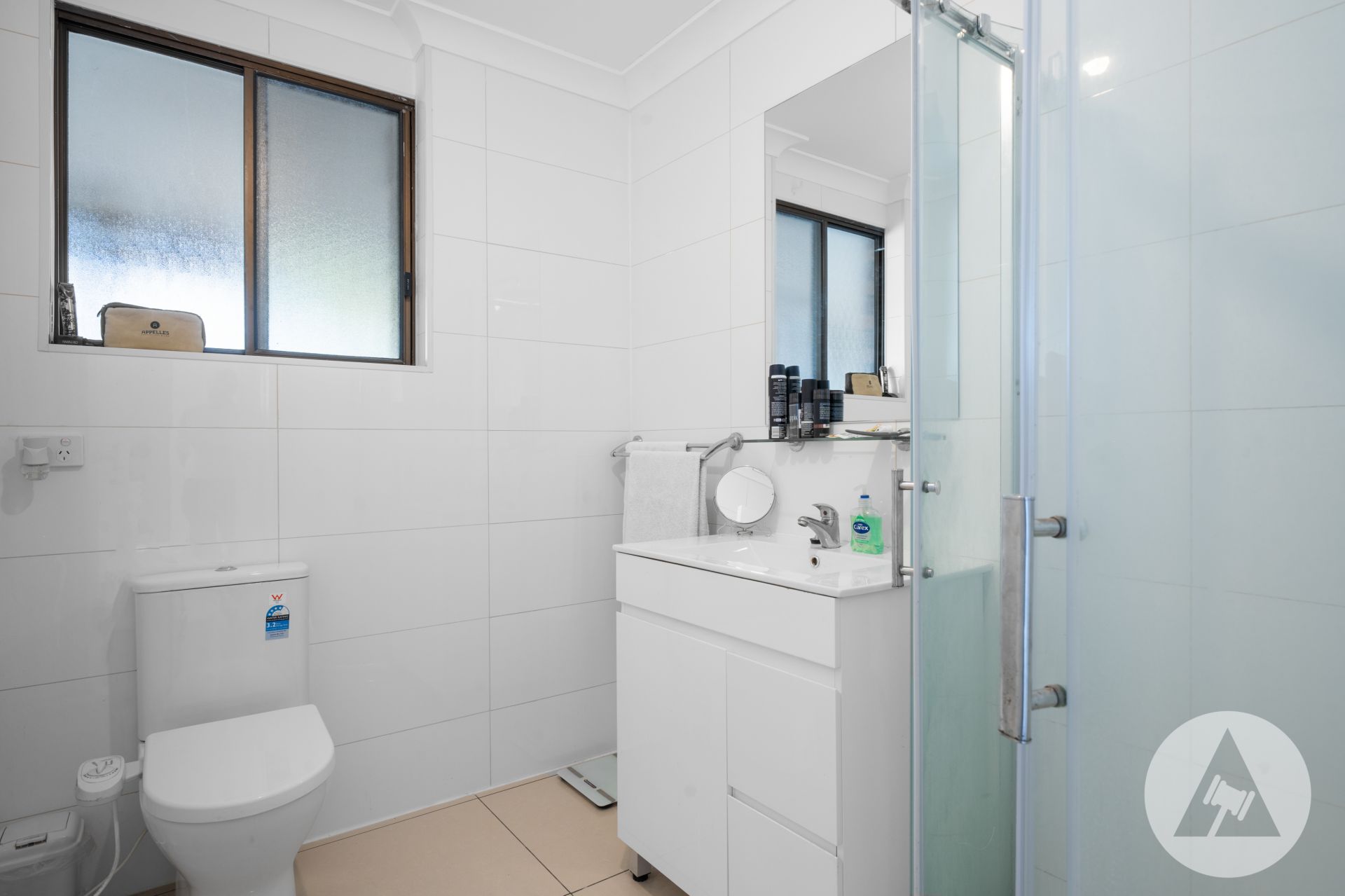 Two good-size bedrooms adjacent the light and bright bathroom. The large master bedroom includes mirrored built-in robes. There are easy care floating floorboards throughout and exterior window shutters for added security and privacy.