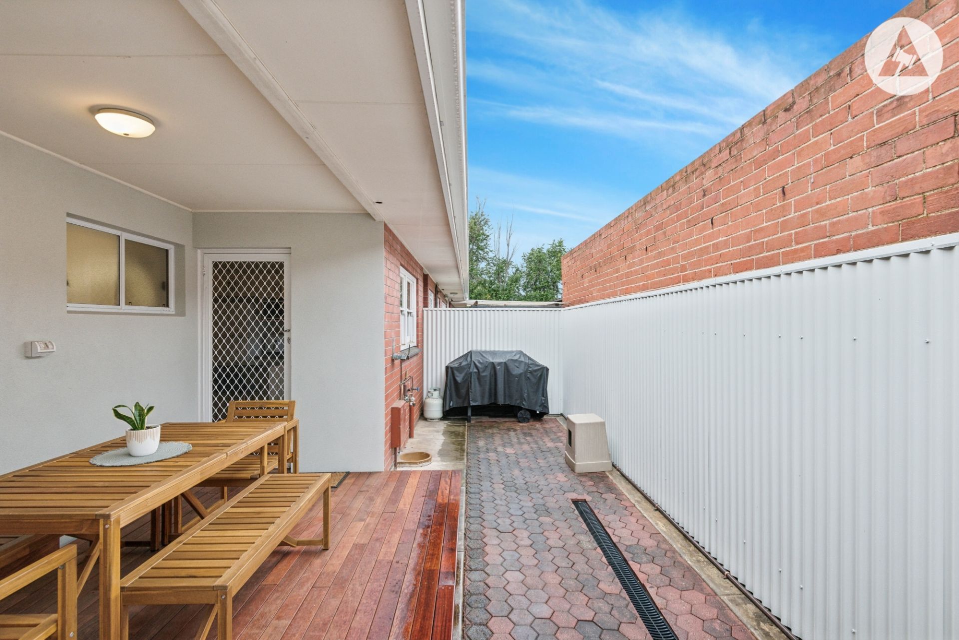 The private courtyard has been transformed into an entertainer's delight, complete with decking and full fencing, creating the perfect spot for a morning coffee or hosting guests.