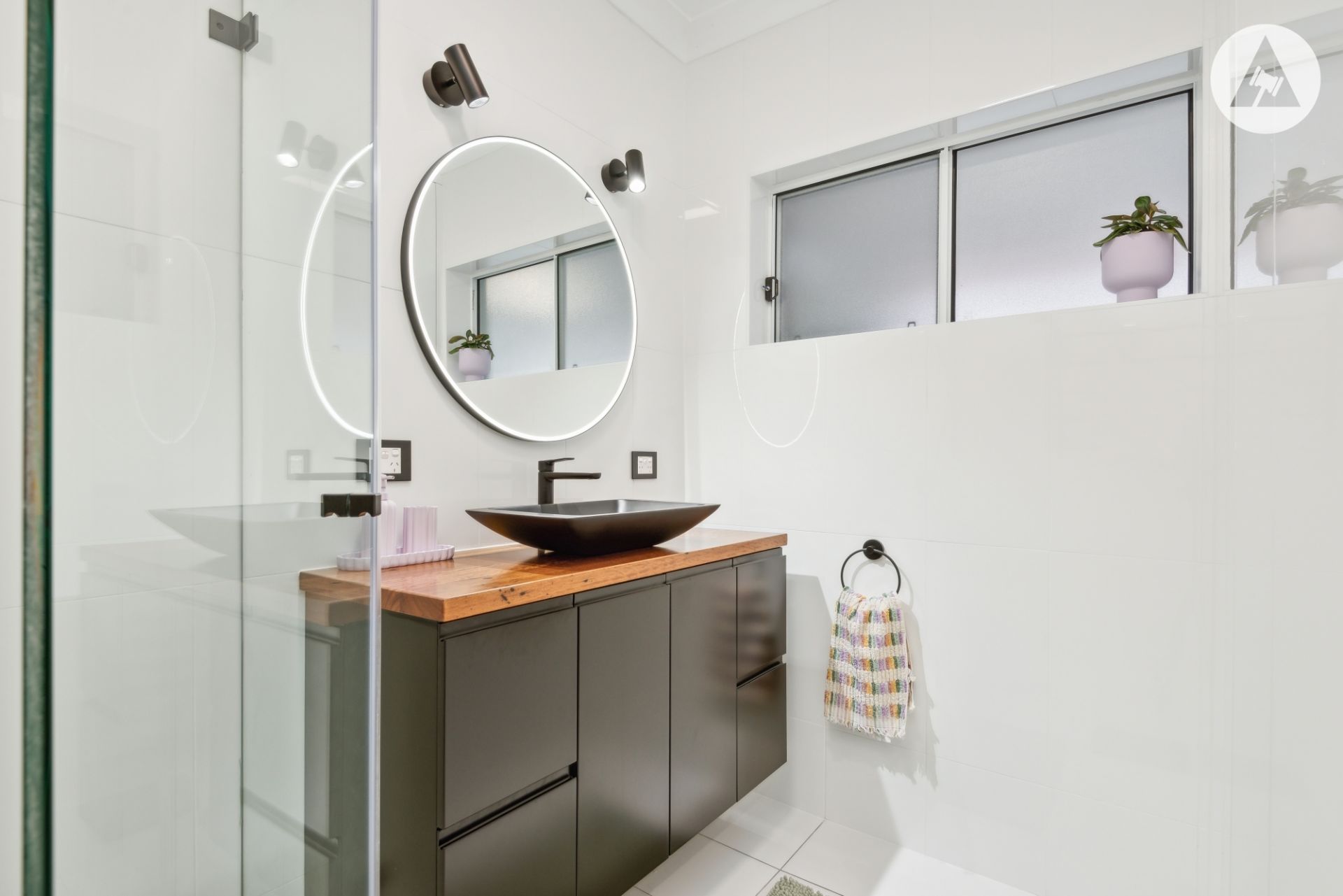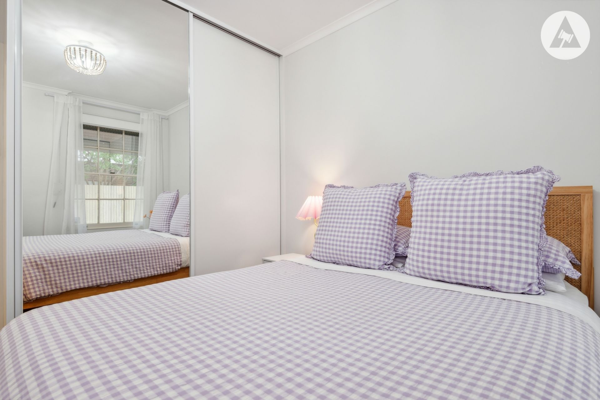 Both spacious bedrooms include full-height built-in robes and new carpet. The luxurious main bathroom is fully tiled, featuring a floating vanity, shower, and LED-lit mirror.