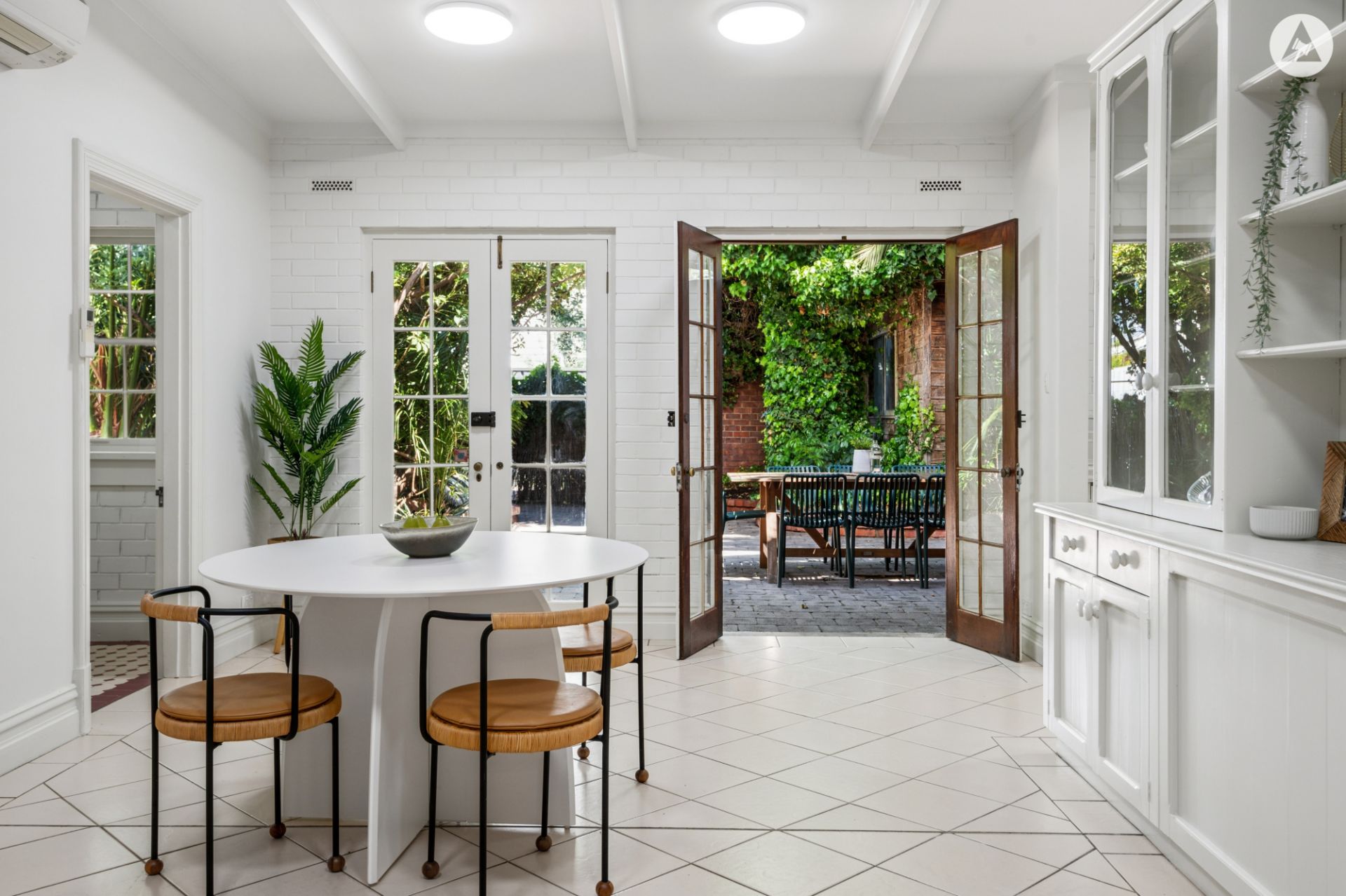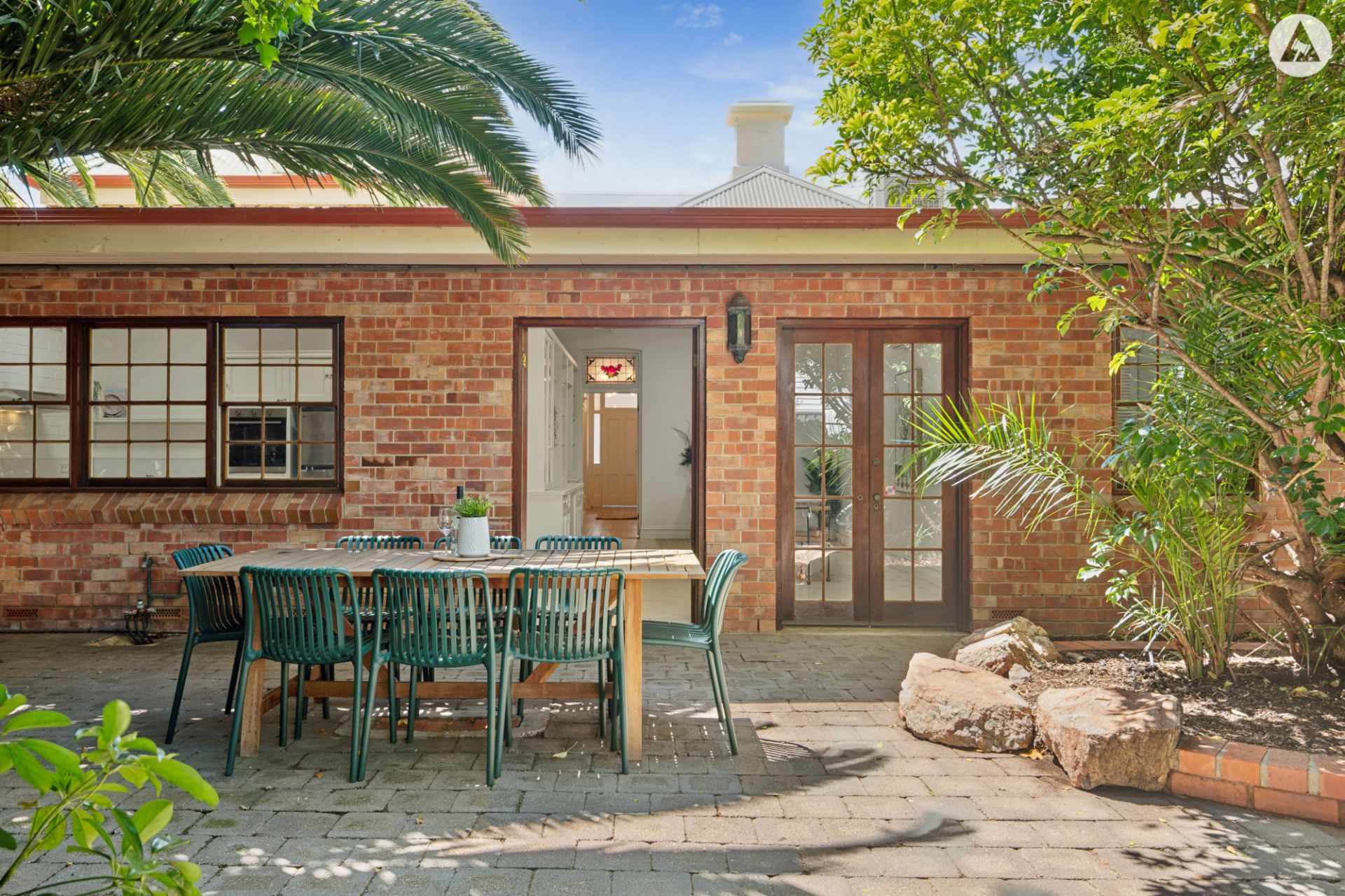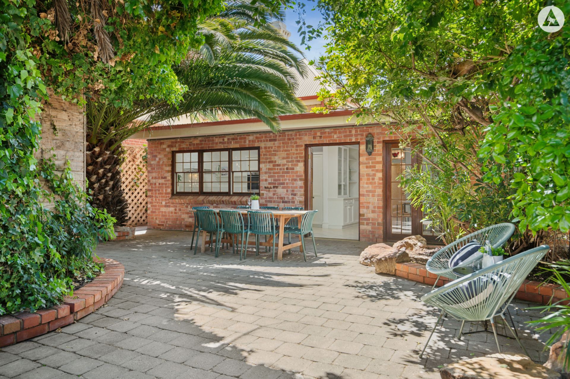 Framed by lush, established gardens the picturesque courtyard provides alfresco entertaining and convenient rear lane access with a double garage, adding practicality and ease.
