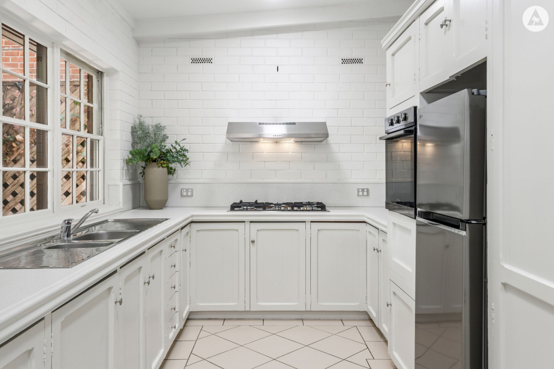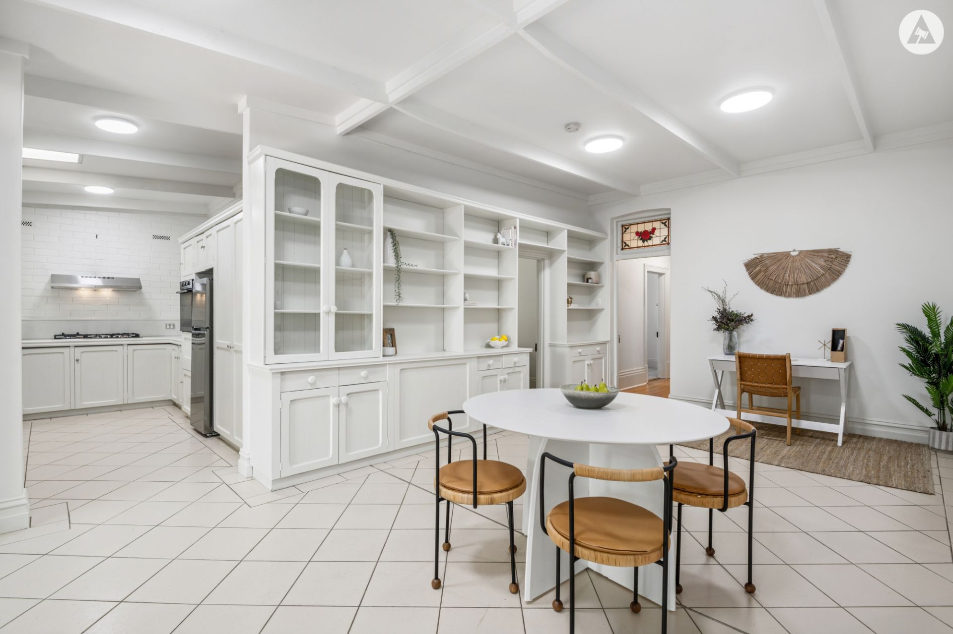 The fresh kitchen has new benchtops and stainless-steel appliances; new gas cooktop and range hood, and electric wall-oven and effortlessly connects the dining and living area.