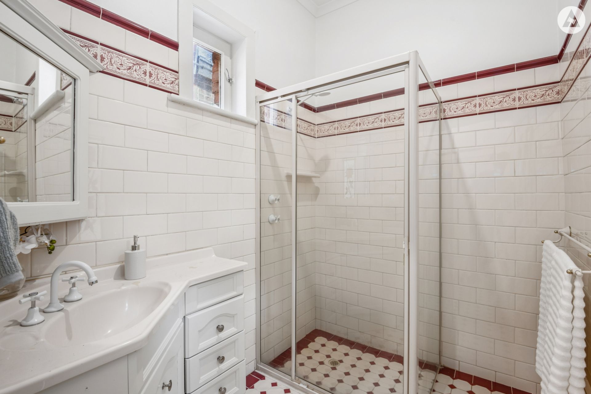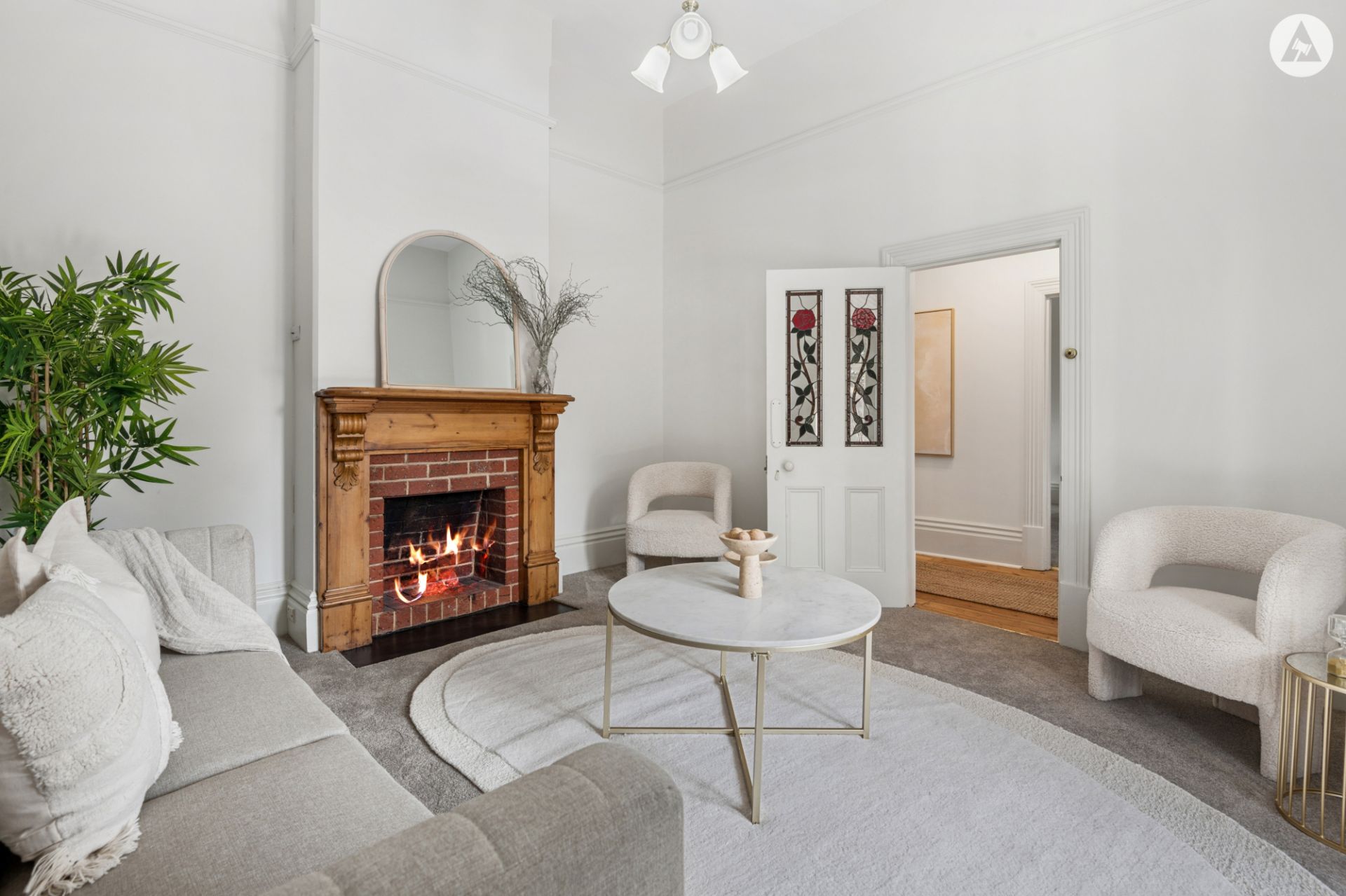The spacious front lounge room is a sought-after separate living room. It includes French doors out to the private front courtyard, and the charming federation style bathroom continues to add elegance to this character home.