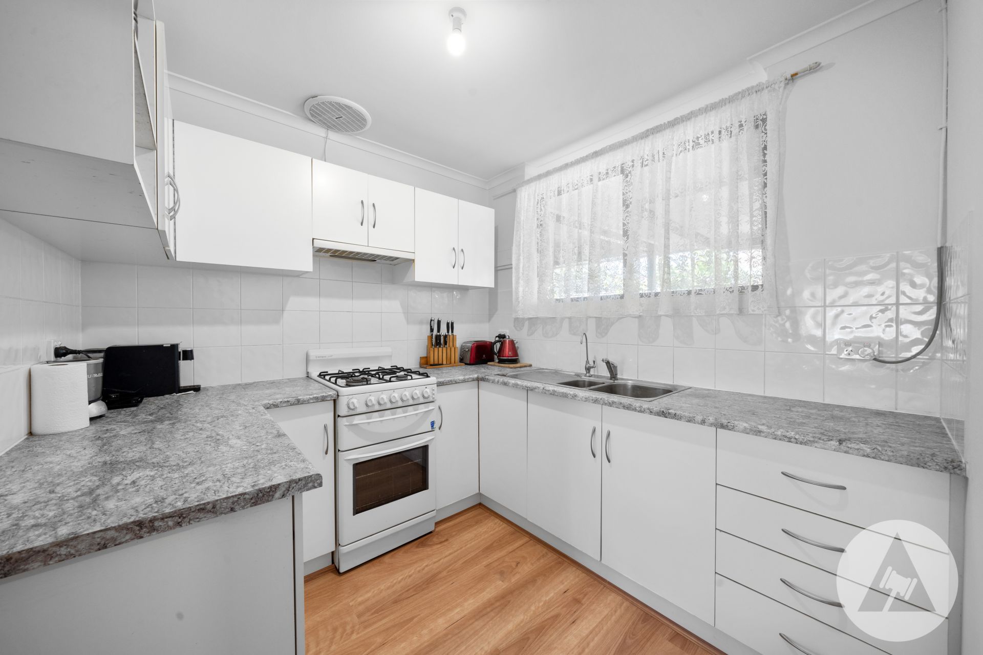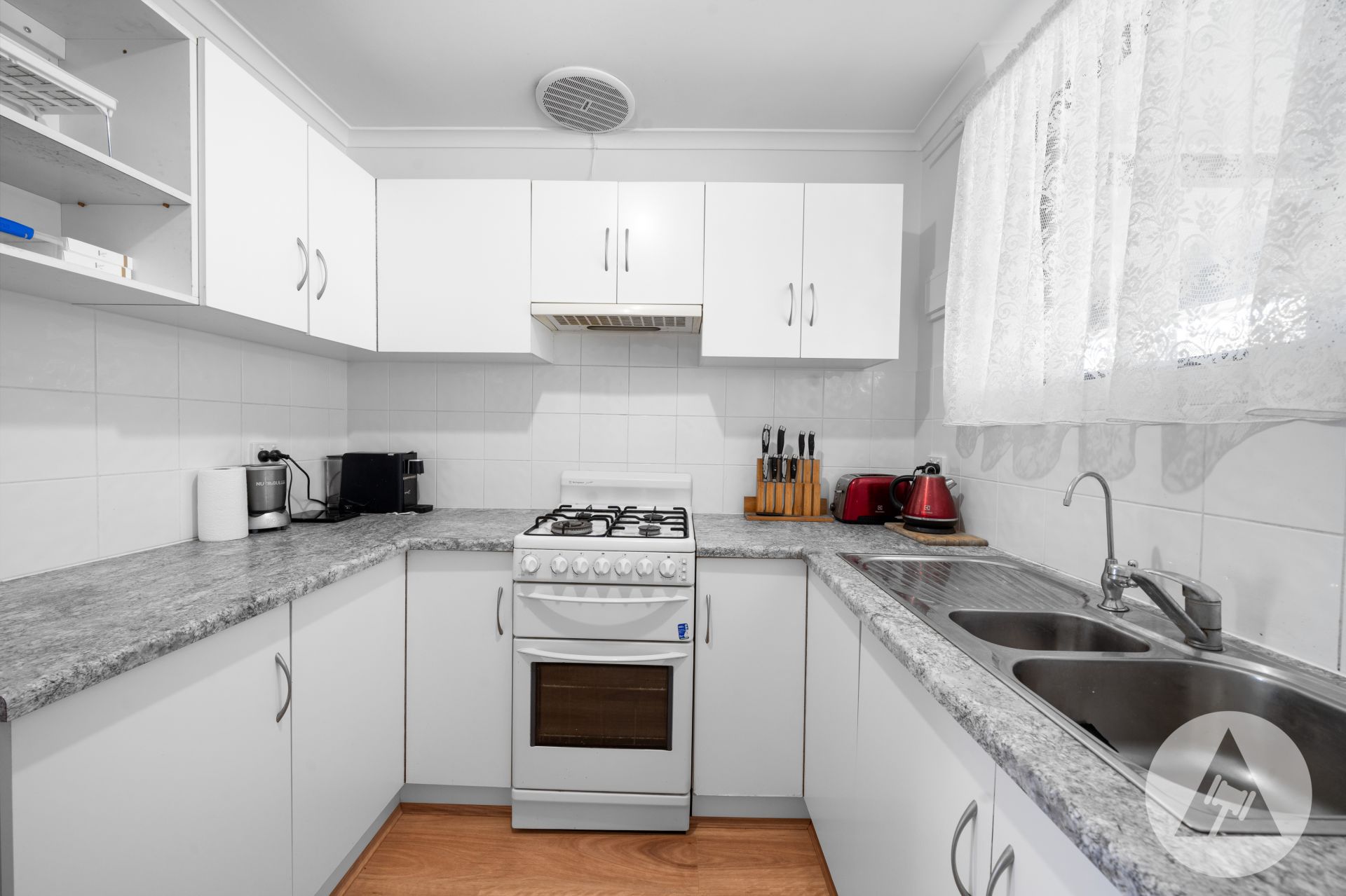 Positioned at the front of a small group, this well-kept two bedroom homette has been pleasantly updated throughout. Inside offers a spacious floorplan featuring lounge, dining and kitchen (gas stove and oven, double sink and ample cupboards).