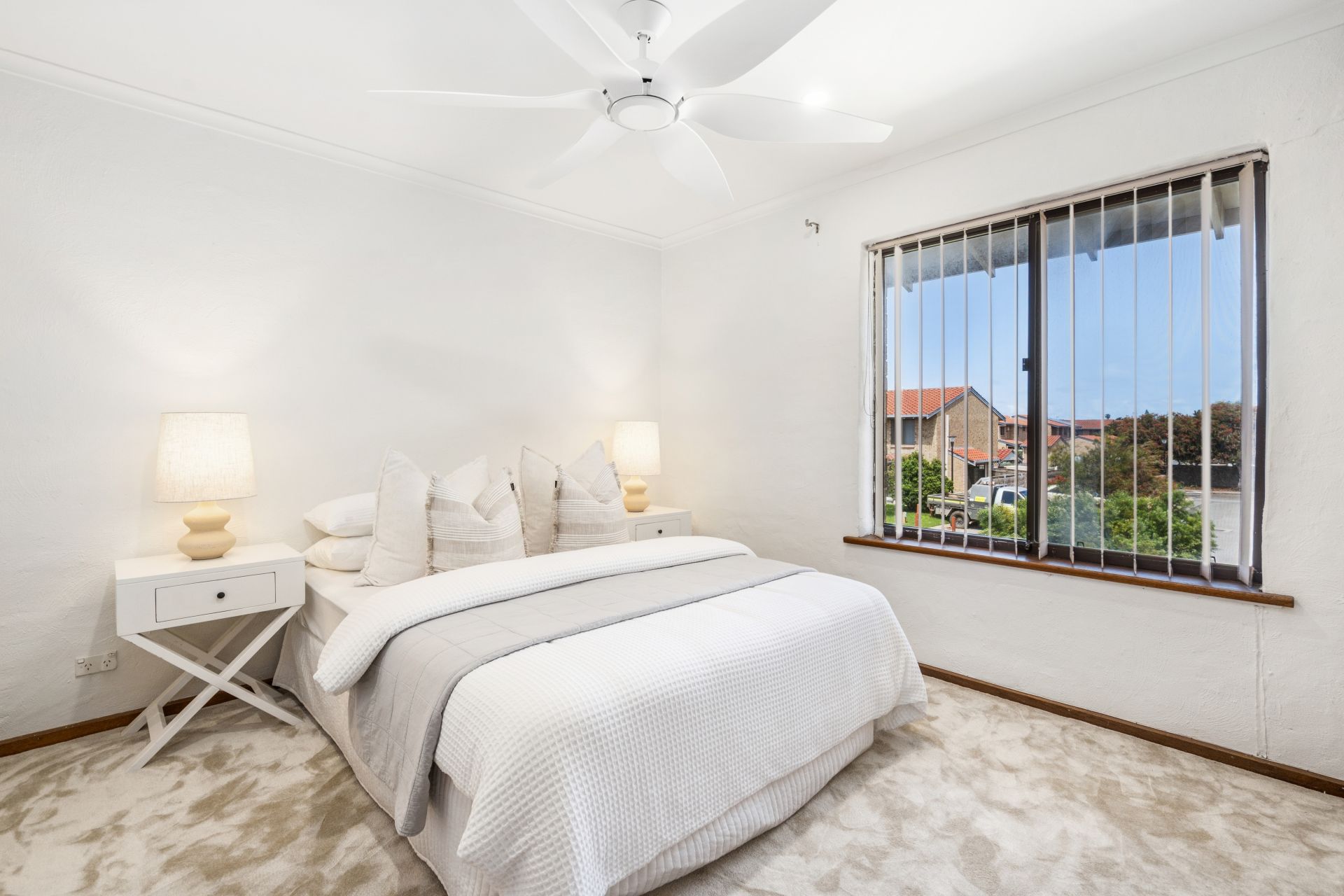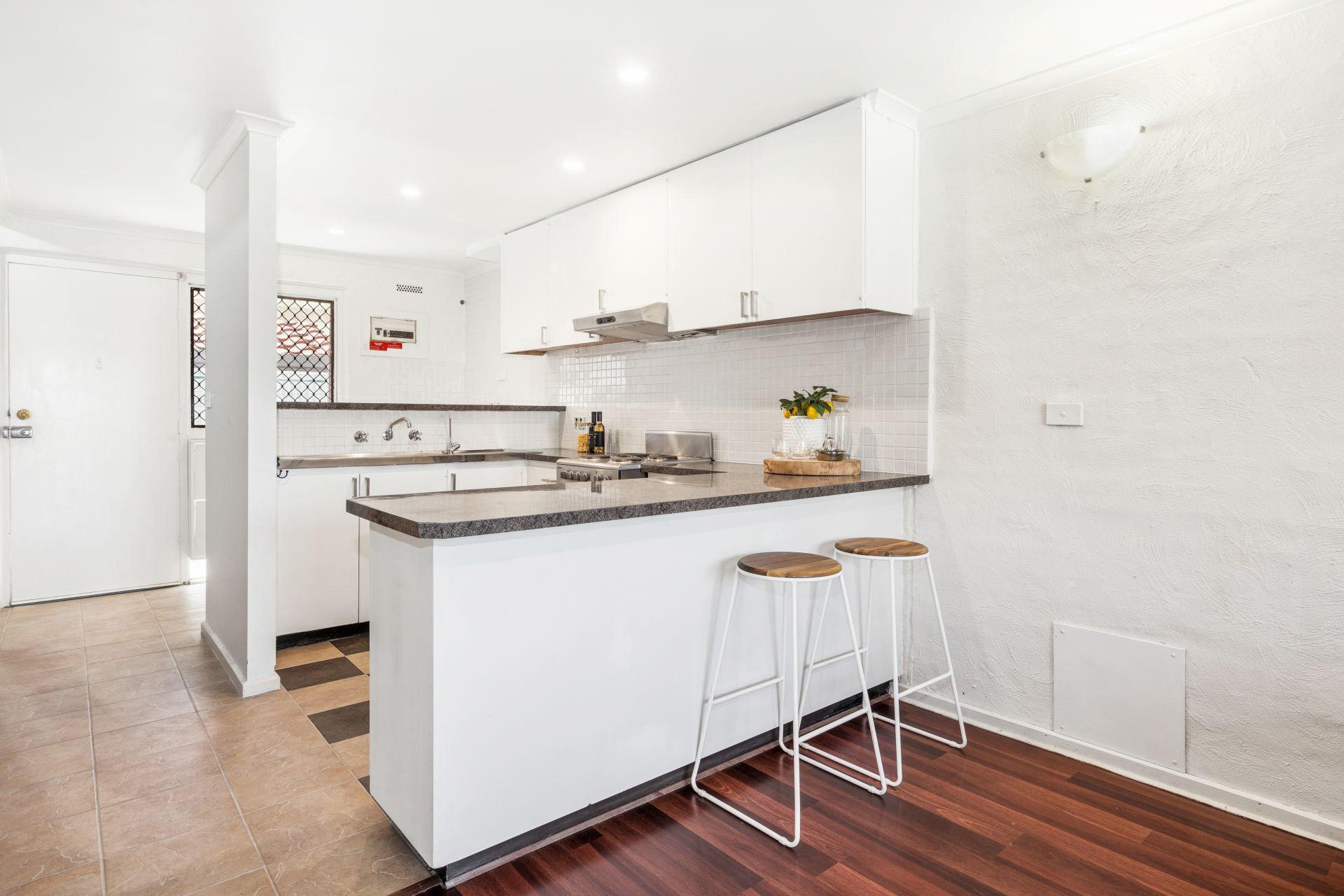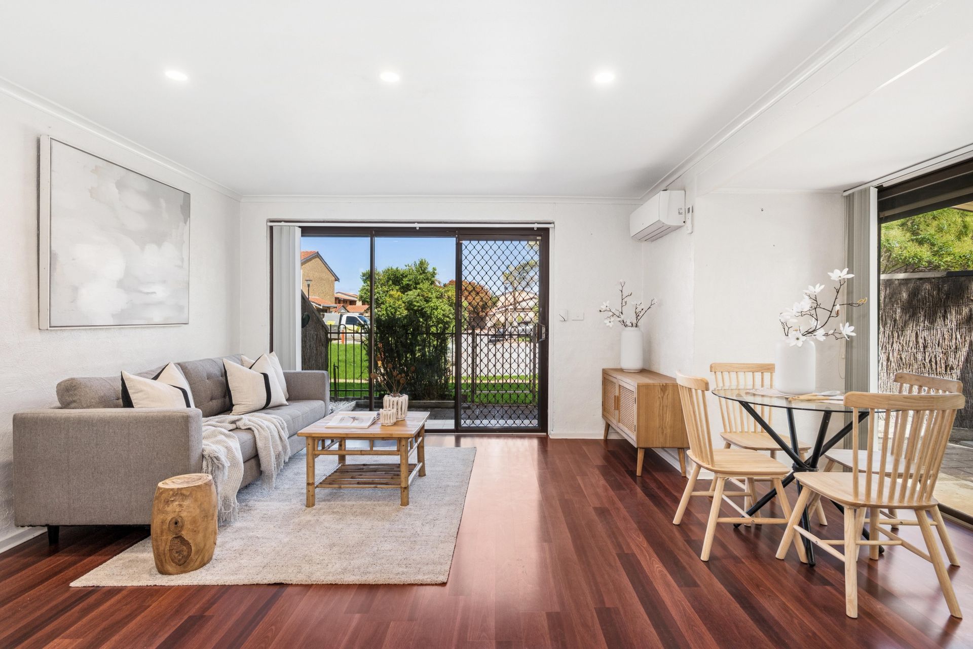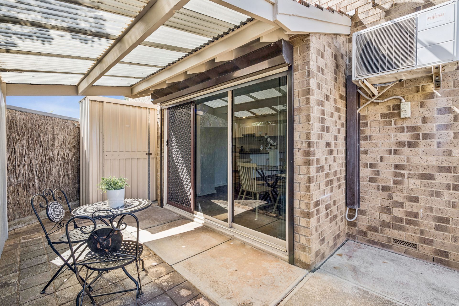 The kitchen overlooks the open-plan living and dining area, flowing seamlessly to an undercover outdoor entertaining space-perfect for year-round enjoyment. Upstairs, two generous bedrooms (main with ceiling fan) feature built-in wardrobes and are serviced by an updated bathroom. Split-system air-conditioning ensures comfort no matter what the season, and roller shutters offer added security.